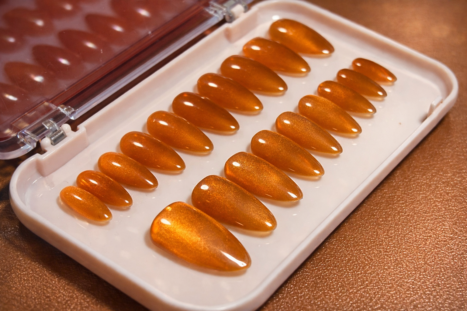1. Select desired press-on nail for each finger, ensuring that shape and size align with natural nail.
