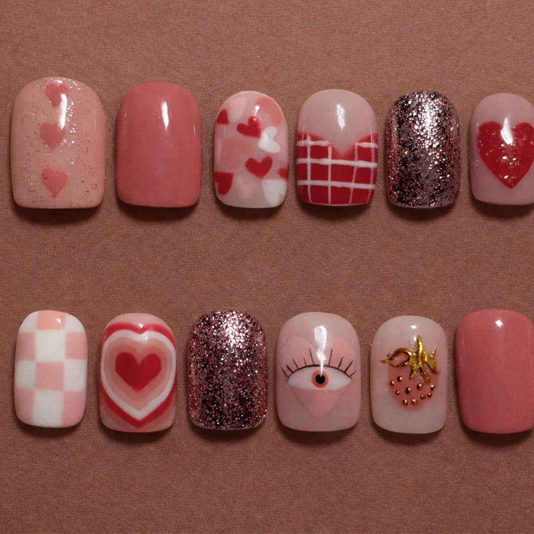 This kids’ Loving nail collection is a sweet celebration of kindness, affection, and joyful emotions, expressed through soft, playful design. Featuring pastel pinks and blush tones adorned with hearts, gentle checks, dreamy swirls, sparkles, and friendly character details, the collection feels warm, comforting, and cheerful. Whimsical elements like layered heart motifs, a friendly eye symbol, and tiny gold accents add charm without overwhelming the softness of the palette. Designed to reflect love, empathy, and emotional warmth, this collection encourages children to express care and positivity in a fun, gentle, and age-appropriate way.